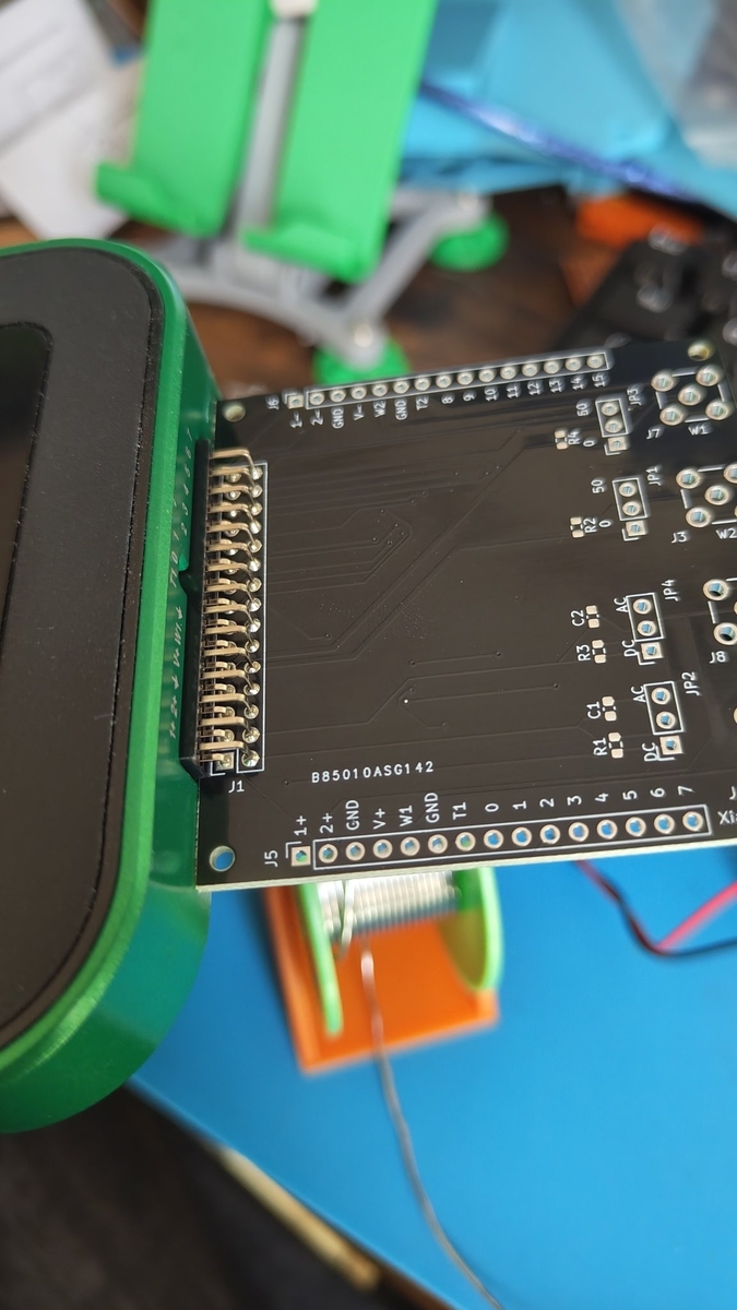 まずはピンソケットをつけます。ここのソケットはAnalog Discovery3との接続で使うのですがクリアランスが結構シビアです。以前ユニバーサル基板で試作した時ハマらなくて悲しい思いをしました。
